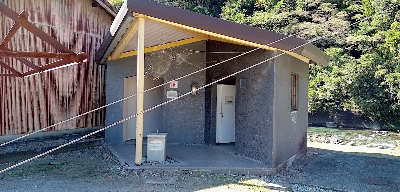 周辺に公衆トイレが見当たらないので、通りすがりの人にとっては非常に助かるトイレ。そんなに新しくはないみたいだけど、綺麗に維持管理されているのがよく分かる。すぐ裏側には興津川が流れている。