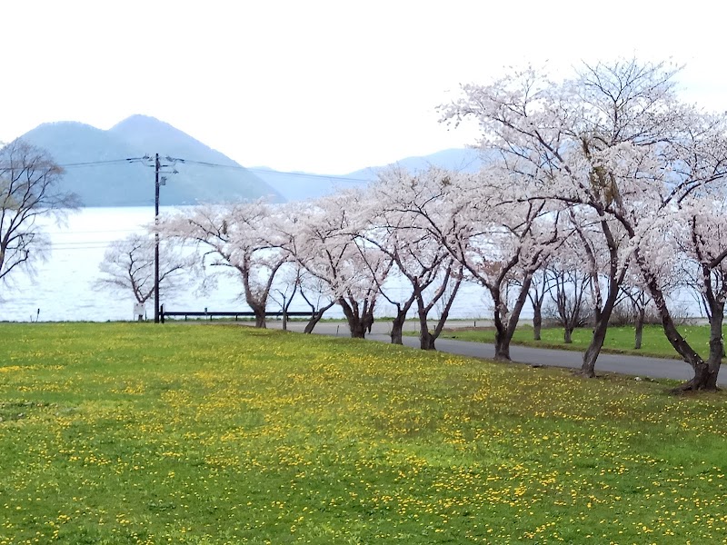 湖畔に続く桜並木が、とってもキレイでした。洞爺湖の北岸と東岸は観光地化されておらず、本来の洞爺湖の姿を楽しみたい方にオススメです。
