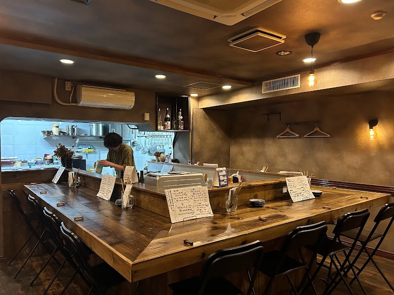 店主さんお一人だったからか、とてもお忙しそうで気の毒でしたが、お客さんも気遣ってる感じがとても良かったです。コの字のカウンターにテーブル席があり、おしゃれな雰囲気。駅からかなり離れて回りは住宅街なのに、お客さんが次々と!頼んだお料理はみんな美味しかったし、他に食べてみたいものもあるし、再訪します!