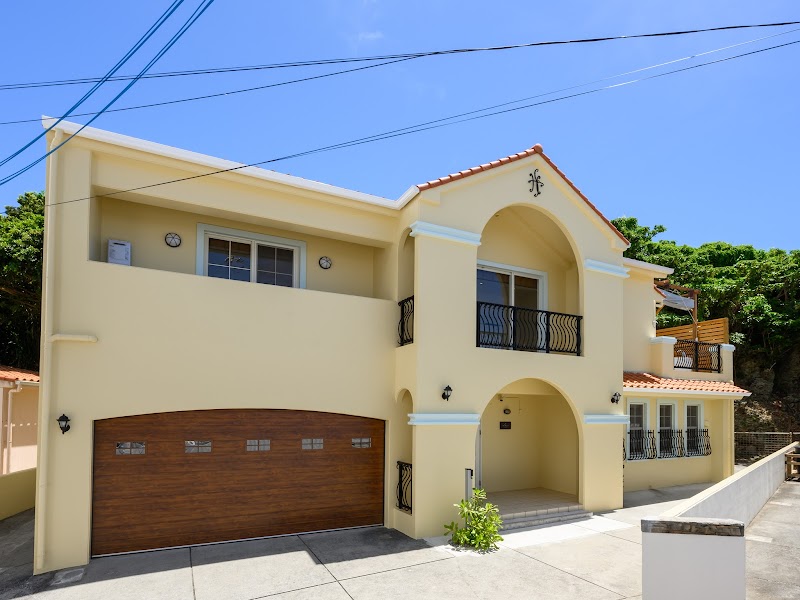 道路を挟んだ目の前に海が広がる閑静な住宅街に建つ大きな一軒家。とても清潔感があり、インテリアもお洒落な空間でした。広々とした寝室がいくつかあり、リビング・キッチンも開放的な造りで、今回は犬一匹・赤ちゃん連れの三人家族で利用しましたが、何組かで利用しても充実した時間が過ごせると思います。利用した当日は雨が降っていましたが、二台ほど停められる広さのあるビルトインガレージもあり、レンタカー必須の沖縄ではとても有り難かったです。また、観光地からのアクセスも良いのに、翌朝静かな海沿いを散歩できるところもとても魅力的でした。