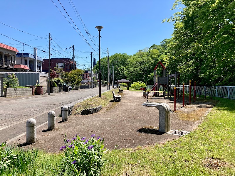シェルター型のあずま屋・水飲み場が設けられている。コンビネーション遊具・3段階の高さの鉄棒・スプリング遊具が設けられている。