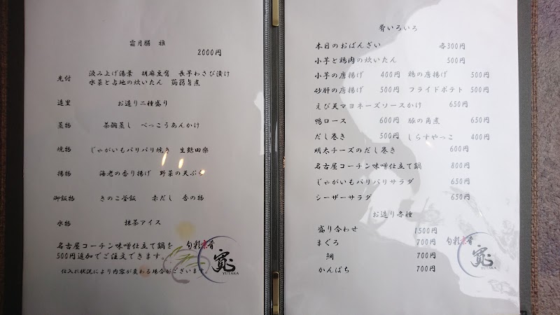 豊川市の人気京料理和食店。手頃な価格で和食が楽しめる。駐車場からエントランスまで綺麗に整備されてとても綺麗♪席はパーテションが切られており、個室感があって落ち着ける。敷地は広く、駐車場もしっかりと完備されている。---夕食利用。皐月膳彩コース3,500円前菜から始まり彩り美しい料理が続く。この価格で量もたっぷりあり、最後の釜飯は食べきれなかった。お客さんは釜飯を持ち帰る人も多い。うますぎにゃんグループでの利用が楽しいお店ですごちそうさま♪