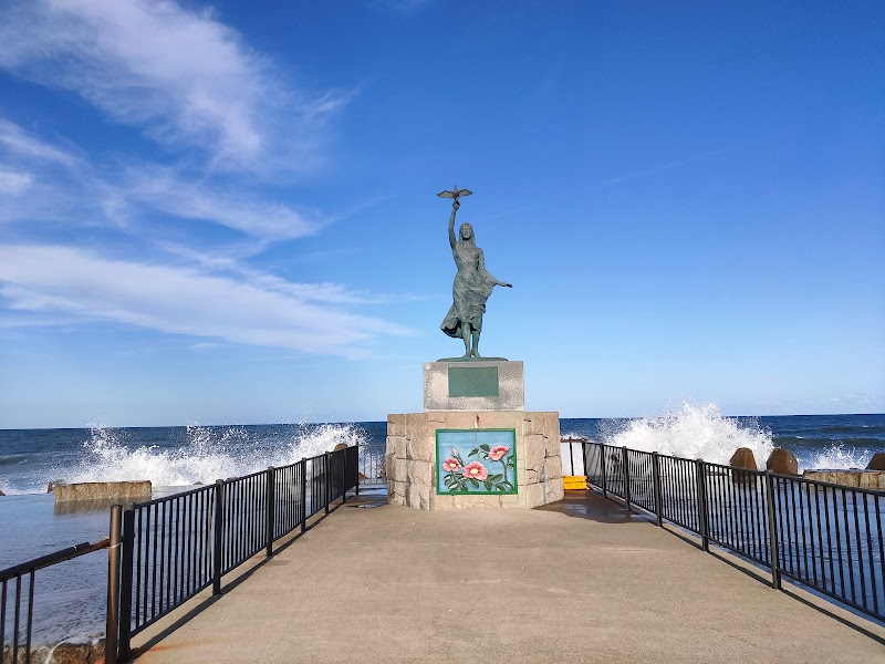 長者原ケ浜潮騒はまなす公園前駅から徒歩で訪問。駅から徒歩30分ほど、はまなす公園によりはまなすの精に会いにいく。海の中に突如現れる精。なかなか妄想的だ。