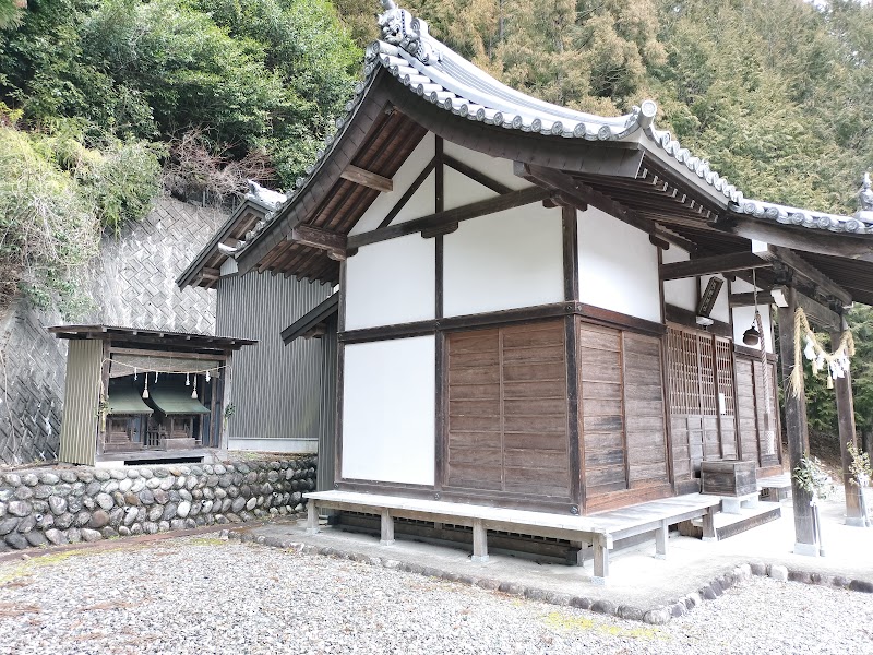 山裾に佇む珍しい形式の社が特長です。
