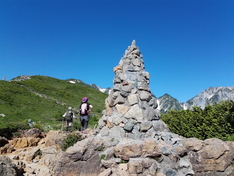 白馬八方尾根にある、眺めの良いモニュメントです。北アルプスの眺めが素晴らしい場所です。高山植物も咲いています。