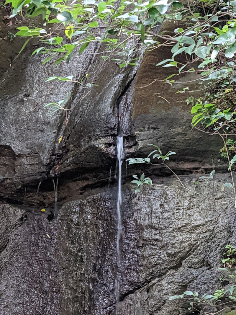 親族から聞いた話。昭和のはじめ頃は、ものすごい水量の滝だったそうです。滝の下にはすぐ遠浅の海が広がっていて、海水浴客や潮干狩りをする人がたくさんいたらしい。この滝は、海から上がってきた人たちがシャワー代わりに使っていたそうです。やがて滝の上の台地にたくさんの住宅が建つようになってからは、だんだん水量が減っていき、海岸も工場地帯を作るために埋め立てが始まって海は遠くなり、現在はその面影はほとんどありません。