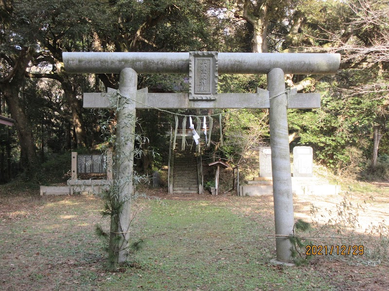 江戸時代初期にこの地を支配していた殿様を祭っている神社。その殿さまですが、大阪の役に出陣後、帰路に陣没。そのときに、同じ病に罹ったものを救うと言い残し、それでこの神社が建立されたというのが由来です。場所は少しわかりにくいが、稲荷塚古墳方面の車道横からやや長い参道がある。参道はこのあたりの平地林がよく保存されており、雰囲気がある。ほかに、モータースポーツのサーキットの脇道からも通行可能。御由緒のとおり、元は氏神様の類なので、大生神社とは特に関係はない。建物や敷地の手入れは丁寧にされており、地域の方や子孫の方から大切にされている様子だった。