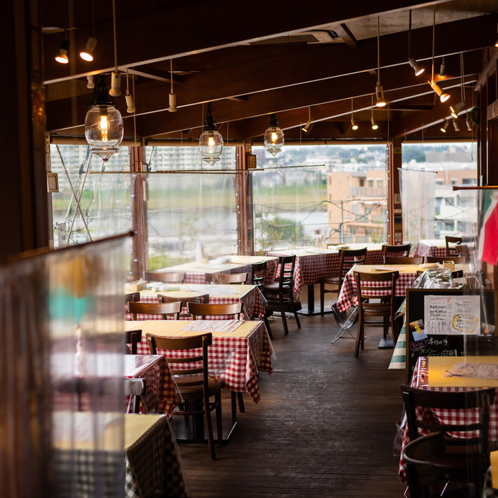 店内は明るく、賑やかな雰囲気。窓が広く大きくロケーションばっちり!夜は雰囲気最高です。食事はチーズフォンデュはとろっとろのチーズで軽い味でパクパクいけちゃう。パスタはからすみが入ってるペペロンチーノを注文しましたが、ほどよい味付けで美味しい!そして、カルパッチョに感動。ボリュームがあっていろんな魚やホタテ、エビが大きくてぷりぷり。ガーリックドレッシングみたいな味付けで美味しかったー♡ノンアルのドリンクも、種類豊富だしピザも焼きたてで美味しかった。全体的にボリュームあって、コスパ最高です。全部美味しかったなぁ。トイレにノートや意見箱が置いてあったり、何か意見やコメントも残せるので、お客さんの事考えてるなって思いました。車で行きましたが、近くにコインパーキングがいくつもあります。駅からも近いし、また行きたいイタリアンでした。ごちそうさまです。
