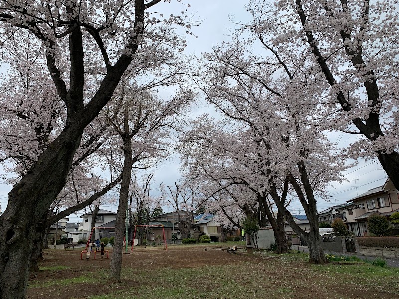 住宅地の中にある、三角形のような形をした敷地の公園です。結構広めの敷地内には、ブランコが2つと砂場、シーソーが2台あります。どちらの遊具も緑に映える赤色で、とても清潔に見えました。他の方のレビューのように、季節が季節ならば桜が楽しめるんですね。ぐるりと囲む木々が満開の桜なら、それはきっと壮観でしょうね。この公園には水道はありますがトイレはありません。住宅地なので駐車スペースもないですね。もしかしたら、三角形の頂点の部分には、1台くらい停められるのかも?
