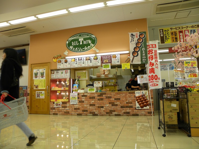 店の対応は普通。みたらし団子、たい焼き、焼きそば、たこ焼、飲み物等有ります。特にオリーブ油たっぷりで焼いた たこ焼は美味しくて、ふわふわ食感です。