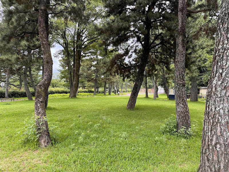 明るく整備された公園は、松と芝生が美しい癒しの空間です。