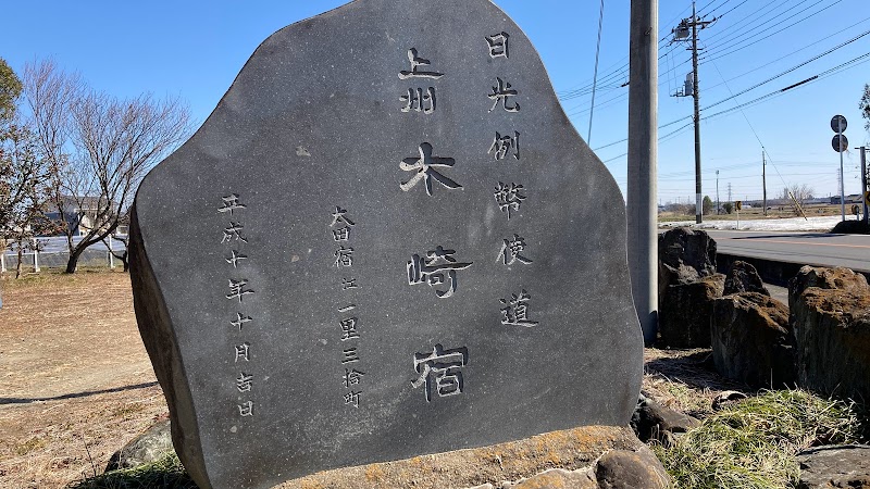 例幣使街道5番目の宿である木崎宿は例幣使一行が小休止するにすぎない小さな宿場であったが、飯盛り女がいたことから街道最大級の宿場に発展。 最盛期には60軒以上の旅籠と200人以上の飯盛り女で大変賑わった宿場であった。しかし今の木崎宿に往時の面影を探すことは難しい。石碑。