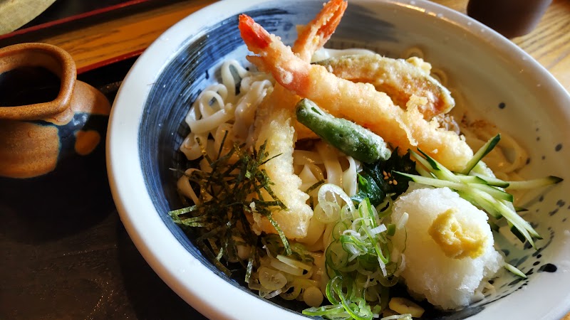 えびおろしきしめんを注文。値段相応のボリュームで満足度は高い。珍しいのは微かな酸味のあるやや冷やし中華系の味だったこと。麺は細麺でコシが強いタイプ。