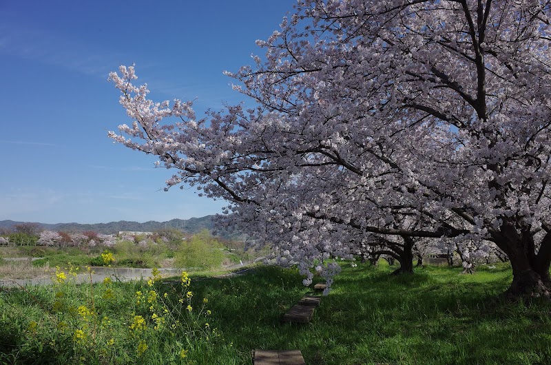 ここは一般にお花見の場所として紹介されてないようだが、川を挟んだ対岸にも桜並木になっている。駐車スペースもかなりある。家族でござを広げて食べるには十分な広さがある。あまり知られてないようだ。トイレも旧国道前の駐車場に備わっている。桜の種類も多いが、吉野桜が圧倒的。