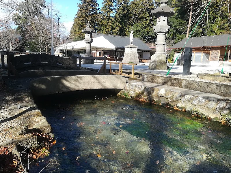 鳥居をくぐると、本殿前を流れる清らかな川があります。