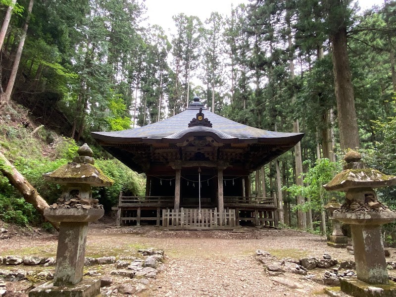 賀蘇山神社の拝殿の奥にあります。いい雰囲気の竹林の小路を抜けていくと巨大な杉の林が視界に入ります。階段の先にはお堂が見えますがこちらが遥拝殿けやき造りの遥拝殿は貫録十分ちなみにここから石裂山の山頂までは約90分かかるそうです。
