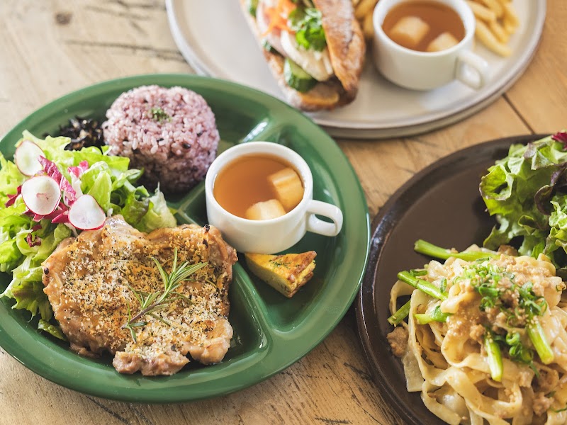 Instagramで某サッカー選手が来店したのを見て利用させていただきました。この日は遅めの日曜ランチで、16時前でしたので待たずに座れました。あとから来た方はテラス席しか空いてないなど結構混んでいました。日替わりご飯プレート(チキンソテー)と欧風カレープレートを注文しました。ご飯大盛無料でしたが、普通サイズで注文、みそ汁はおかわり自由とのことです。届いたプレートは結構なボリュームがありました。サラダもしっかりとした量があり、チキンソテーも大きめです。チキンソテーは表面にカリッとした部分があり、和風テイストのあっさりとした味付けで食べやすかったです。欧風カレーは適度にドロっとしたルーに柔らかい牛肉が最高に合っています。食べた瞬間は辛くはありませんが、後から少し辛さを感じるちょうど良い辛さでした。店内には瓦屋さんの名刺があり、瓦屋さんの多角化経営の1つのようです。県産の食材やオーガニック食材を使用している点もおしゃれです。店員さんが笑顔で丁寧に接してくださったのも印象的で、とても気持ちよく食事を楽しむことができました!