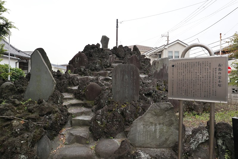 長島香取神社さまの境内社です。立派な富士塚の上に鎮座しています。