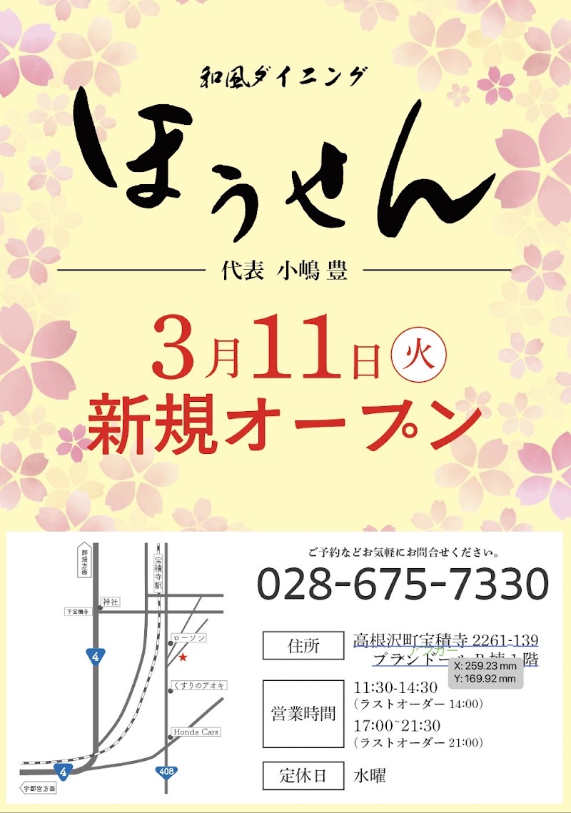 〒329-1233 栃木県塩谷郡高根沢町宝積寺2261−139 |