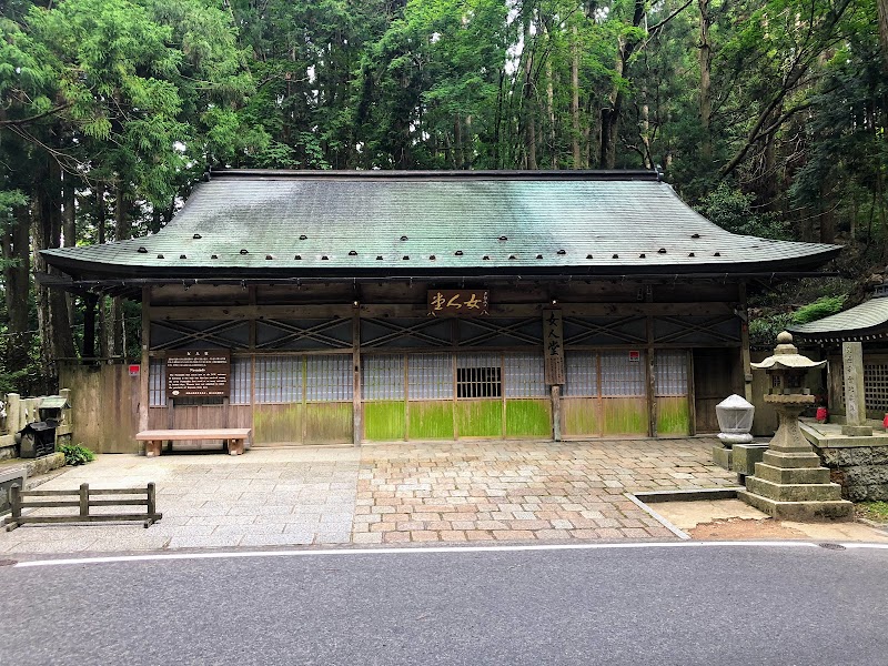 坂道を下る長い通路が印象的で、高野山の美しい景色が迎えてくれます。