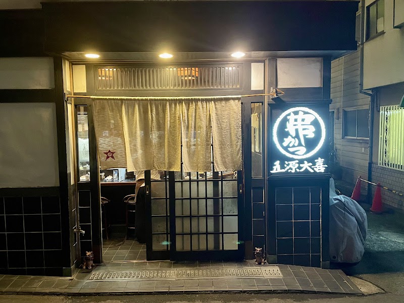 【五源大喜】ヘッドの香ばしさと甘さ、丁寧な仕込みで楽しむ予約1年待ちの串カツ屋さん大阪市阿倍野区 昭和町、昭和町1番出口から南にすぐの路地にある五源大喜さん。予約1年以上待ちな人気串カツ屋さんです。ヘッド(牛脂)の香ばしさと甘さが特徴的な串カツ。そして、素材の良さと丁寧な仕込みも素敵で1年待ちも納得の美味しさ。大将も女将さんも温かで居心地の良い下町の雰囲気もまた素敵なんですよね~。=======この日はおまかせ+がっつり追加して1人1万円くらい。もちろん焼酎がぶ飲みしてるよw・牛肉 165円・キスの大葉巻き 165円・車海老 650円〜・ホタテ貝柱 242円・コーン・アスパラ 330円〜・ねぎま 165円・こんにゃく 165円・子持ち昆布 242円・蟹爪 385円〜・あまご 242円・松茸・サーモン 242円・鮑・餃子 165円・アンペイ242円・うずらの卵 165円・おもち 165円酒・生中 605円・焼酎色々w 605円〜