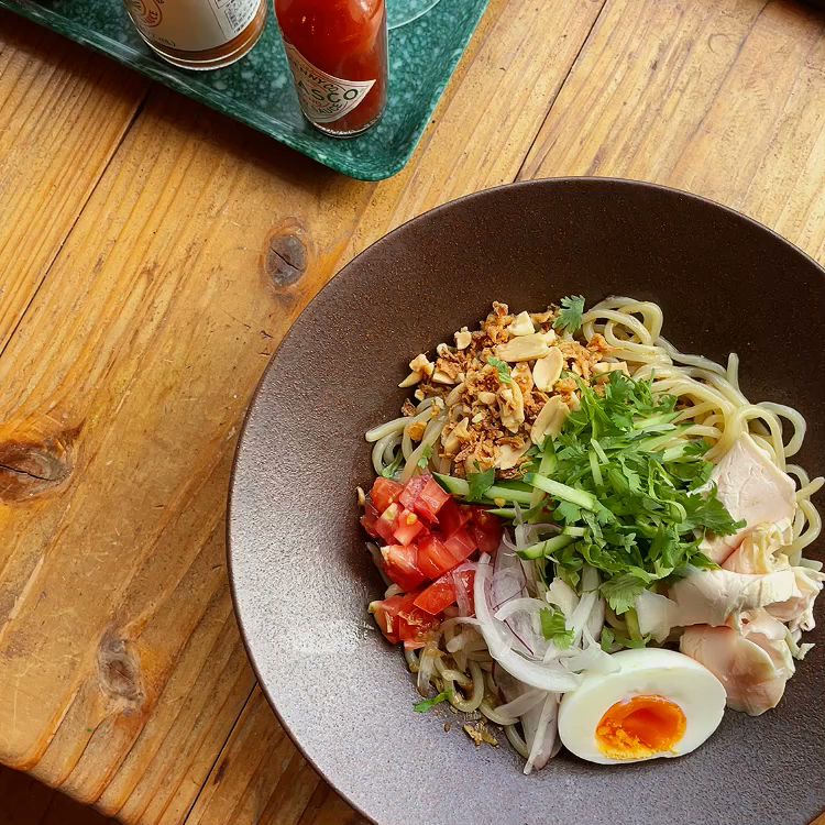 本日の注文は🌟ベトナム鶏飯🇻🇳🐓🌟手ごねミートボールのトマト煮🍅を注文☝️どちらもサラダセットで1,200円🥗ベトナム鶏飯は、鶏肉🐓、パクチー🌿、甘辛調味料と旨み調味料、に鶏ガラ出汁のご飯🍚をスプーンでまとめてパクり。んー、、美味ー😋手ごねミートボールのトマト煮🍅は、ミートボールが柔らかくてジューシー😋トマトで煮込まれて旨味も倍増🆙きっとお子どもはこのメニューは好きだろーなー^ ^デザートはかき氷(SHAVED ICE)🍨2種あいがけ(チャイミルク、さつまいもキャラメル)を注文^ ^さつまいもキャラメルも美味しい😋けど個人的にはチャイミルク🍨がスマッシュヒット✨✨アイスの上に乗っている胡桃(黒糖クルミ)も美味ー😋今度行く時は、県産厚切りローストポークを食べたいなー🤤