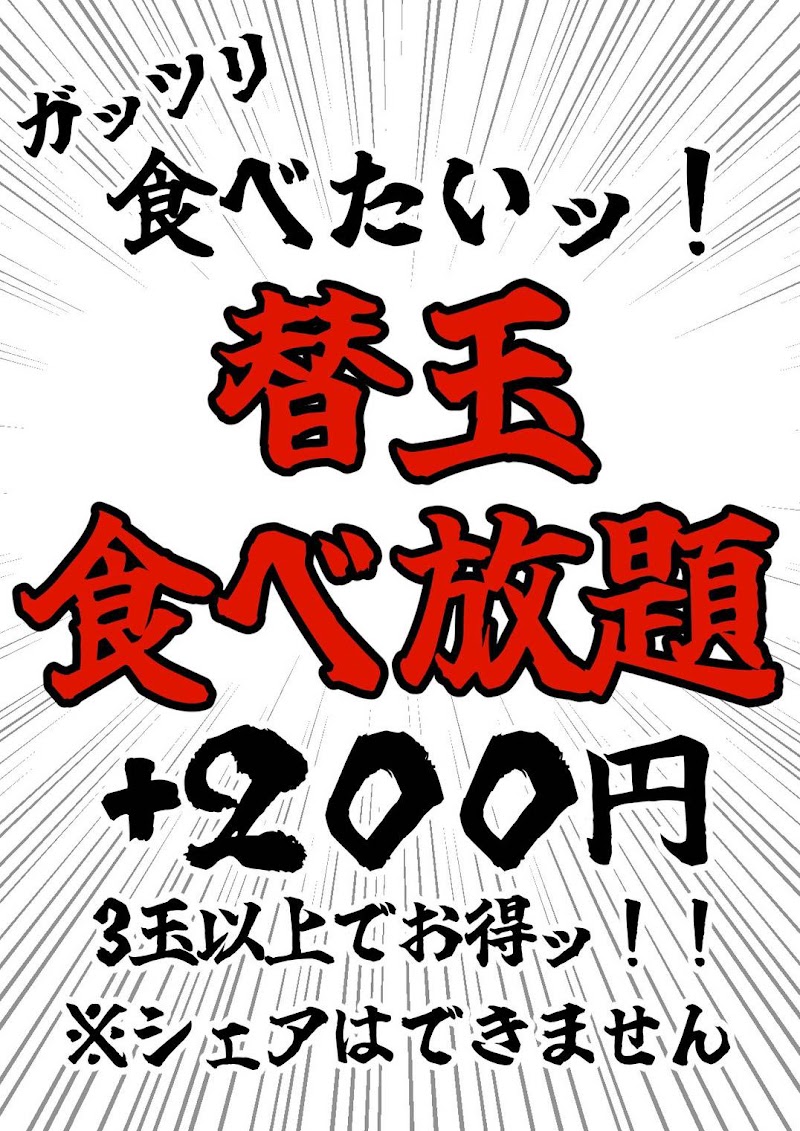 やっと好きな味の豚骨ラーメンに出会えました!スープが美味しいのはもちろんのこと、お気に入りの麺も見つかり定期的にこちらに通っています。↓良いところをまとめて見ました↓味について◯本格豚骨スープ、麺もすごく美味しい◯麺の種類が豊富で麺の硬さも選べます◯替え玉がお手頃価格サービス 雰囲気について◯店長さんもスタッフの方もとても親切◯窓を開けて換気されており衛生的◯毎月8.9日替え玉無料デーやサービス券の配布などイベントも有設備について◯QRコードを読み取って注文するシステム◯清潔感のある店内 お手洗いも綺麗◯お会計は後払い クレジット可。