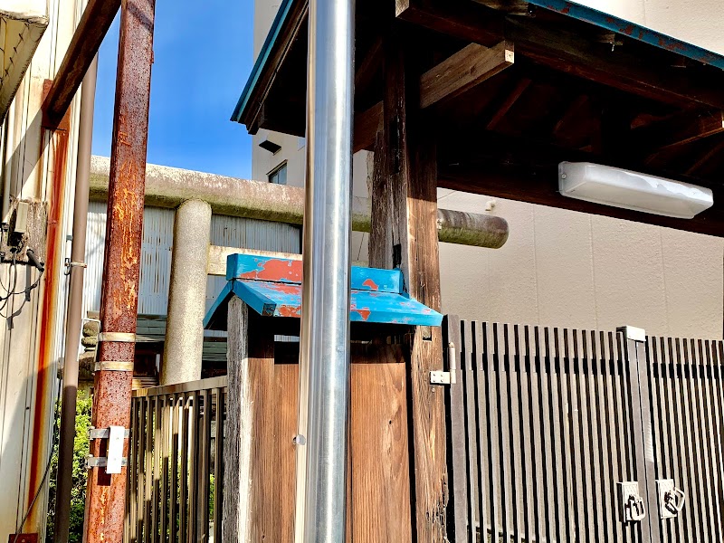 建物の中にある神社です。旧鉄道線の跡にある秋葉神社とは別のものですし、管理もこちらの方が行き届いています。鳥居の前に家の門のようなものがあり、立ち入る事はできません。