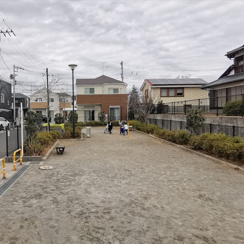市川大野と秋山駅の中間、住宅街にある公園。水飲み場、砂場、鉄棒に加え、少し細長いグラウンドがあり、低学年の子供たちが仲良く遊んでいた。