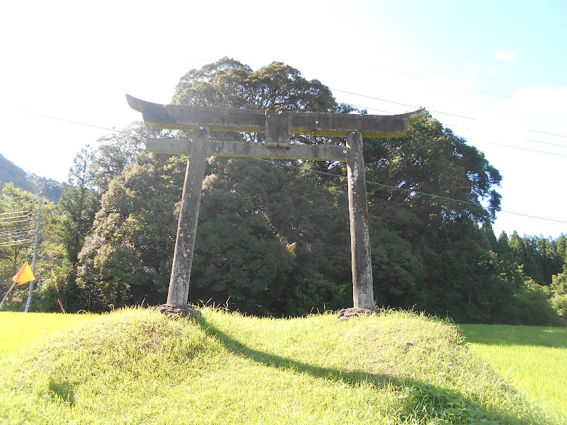 コミュニティバスのバス停「柳瀬」の所に少し広い場所があり、そこに車を停めさせていただきました。バス停のすぐ横に1の鳥居があり、鳥居をくぐり田んぼのあぜ道を歩いて行くと、小高い丘へ登る階段がある。境内向かって左側に自然岩で造ったと見られる灯籠があり歴史を感じる。石垣の間の階段を登り拝殿の扉を開けると本殿がある。祭神 速玉男命(はやたまおのみこと)菅原道真霊(すがわらのみちざねのみたま)大山祇命(おおやまつみのみこと)備考 古老の口碑によると、天正7卯巳年3月建立(宇目町史より)