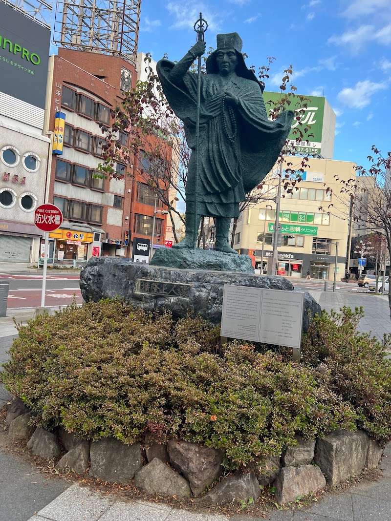 日本アルプスに初めて登られた上人様を記念しています。松本駅から日本アルプスが眺められます。ありがたいことです。