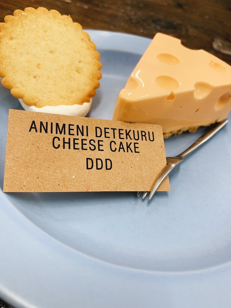 アニメに登場するチーズケーキが印象的で目を引くお店です。