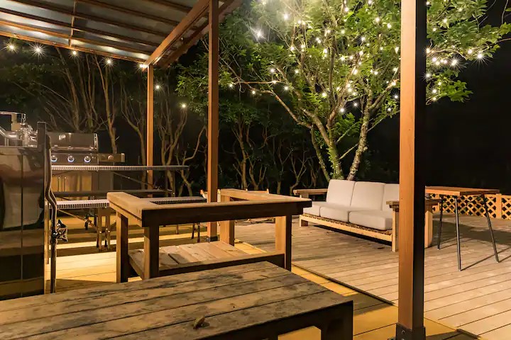 母の喜寿の祝いで使わせて頂きました。母と兄妹4家族が集まり、とても良い時間を過ごせました。キッチンには食器や調理器具が揃っていて、リビングには大きなスクリーンとプロジェクター、4家族がゆっくりできる各個室、庭にはピザ窯と本格的なバーベキューコンロ。本当に素敵な場所でした。ホテルだと、一緒にゆっくりする場所がないけど、ここならリビングで談笑できるし、一軒家なので子供達も騒ぎ放題。また集まりたいですね。