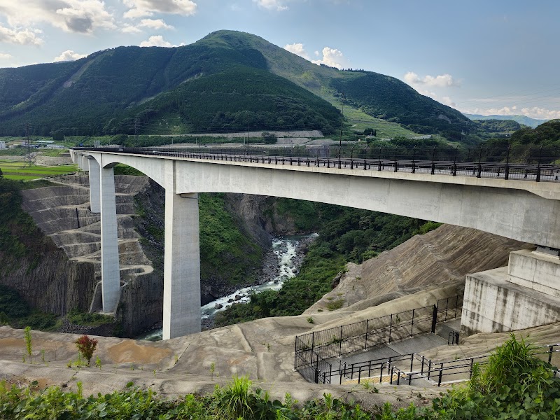 熊本方面から高森・高千穂方面に行く際に通りました。とても綺麗な橋です。熊本地震の際に倒壊し大学生が一人亡くなっており、展望広場にある「工事完成記念碑」にもその旨が記載されています。展望広場に行く際にはぜひ記念碑の碑文を読んで亡くなった大学生を偲ぶと少しでも供養になるではないかと思います。