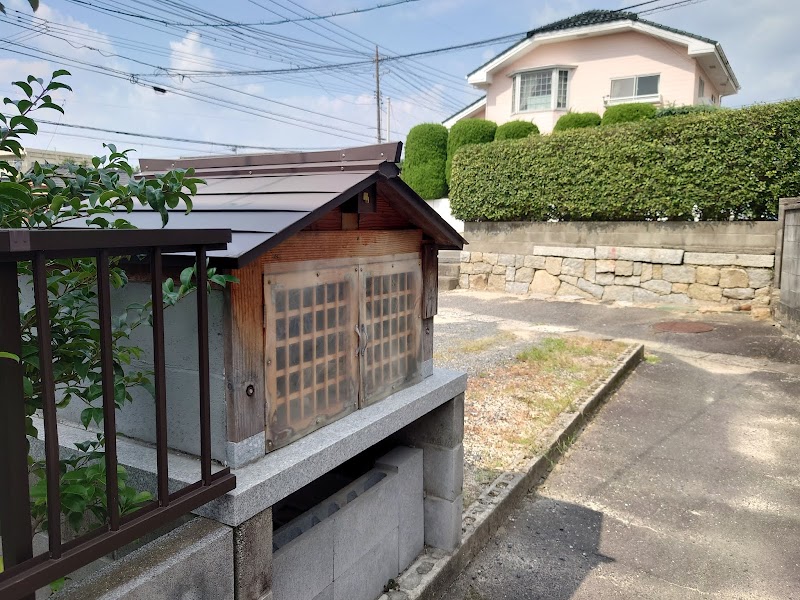 英雲荘前交差点から三田尻港方向に140mほど進んだ左側にあります。最近、空き地の奥に移設されたのでしょうか。立派な土台に手作り感あふれるお堂が乗っています。お堂の中には歴史のありそうな厨子も置かれています。