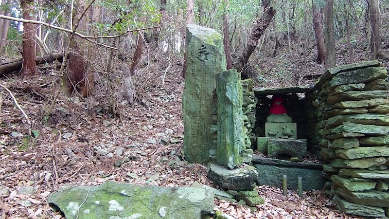 石井町のウォーキングコースを旧童学寺方面へ進む途中、参拝する事が可能です。但し、徒歩専用のウォーキングコースでありますので、お車で向かう事は出来ません。ウォーキングコースから近く、歩道より見える位置にありますが、階段等はありませんので、落ち葉等で足を滑らせないよう、呉々も御注意ください。大変古くからの歴史を感じさせられる地蔵尊であり、石積みの祠は特徴的です。最も左に位置する石碑、供養塔におきましては梵字が数多く記されており、解読には専門的知識を要します。何より、中央に鎮座されるお地蔵様の台座に彫られた、履き物と瓶の模様は独創的であり、古来からのメッセージを発信しているかの様でした。