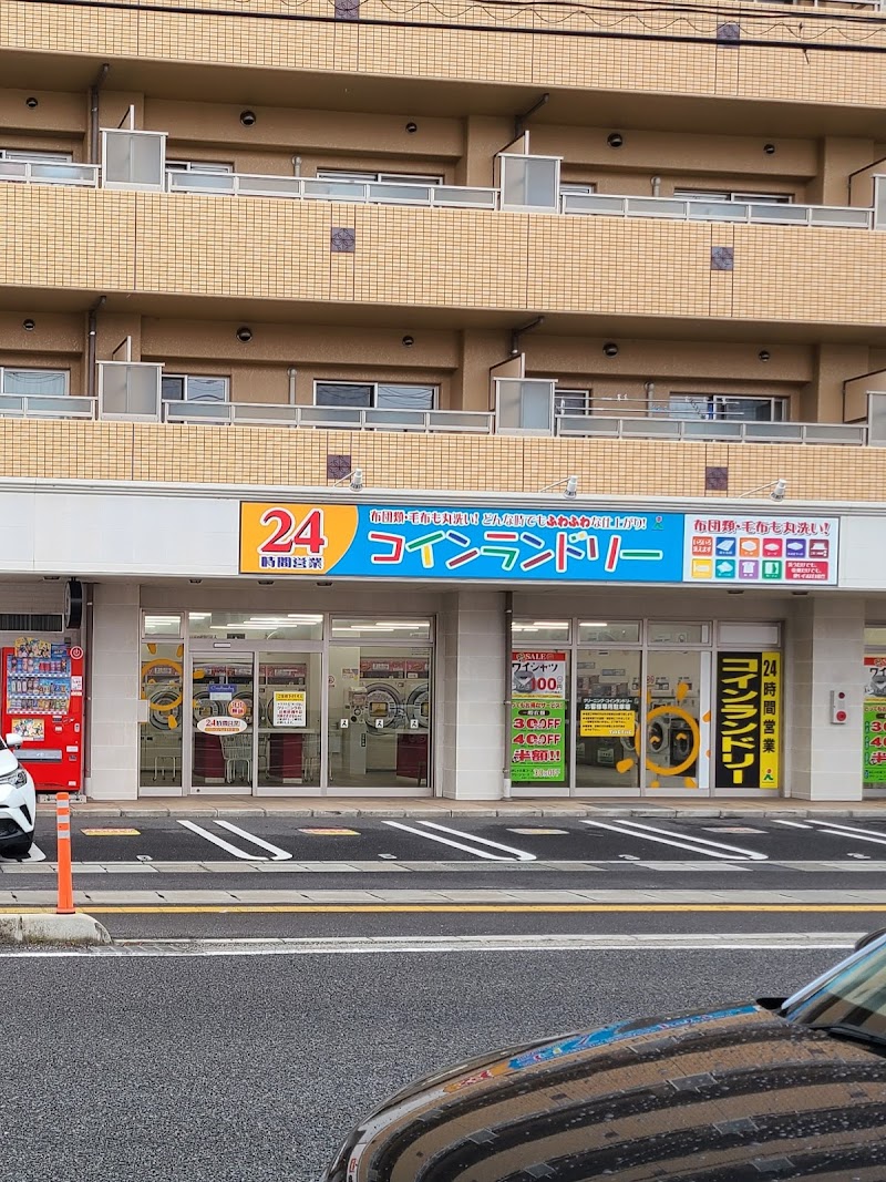向かいのスーパー(マルナカ)も24時間営業なので「買い物ついでに〜」とか其の逆も出来ますね。冬場は洗濯物が乾き難いので重宝する存在です。また、駐車場もあるので大変助かります(^ω^;)