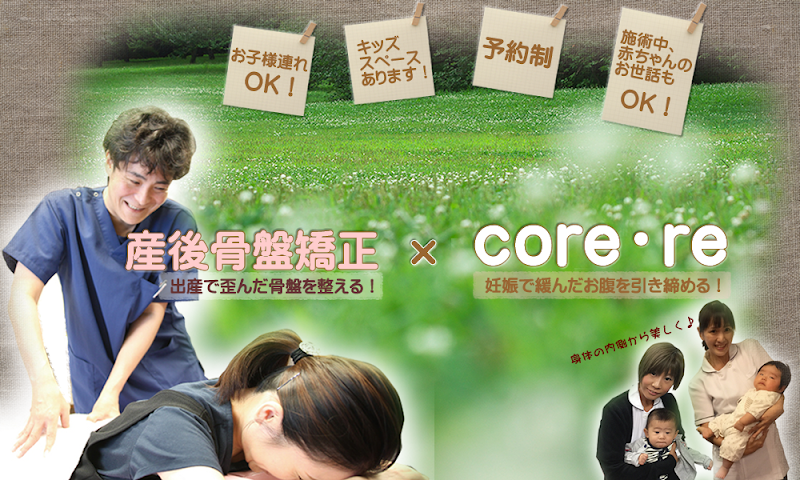 産後2ヶ月から骨盤矯正とコアレに通わせて頂いております。腰痛、尿漏れに悩んでおりましたが、ここ1ヶ月でだいぶ改善されました。子どもを預けることができ、着替え等も必要ないところがありがたいです。先生がとても優しく、的確な施術をして下さいますし、痛みが無いため通いやすいです。スタッフの皆さんも明るく、話しやすいため毎回訪れるのが楽しみです。少しづつではありますが、ダイエットも進めて産前の体型が取り戻せるよう頑張ります!今後ともよろしくお願い致します。