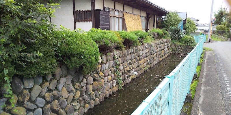 玉石垣(土塁の跡?)水路のある原田氏宅と思はれます。北西に土塁らしき薮があります。館跡の表示はありません私有地なので深入り侵入は謹んでおきました。
