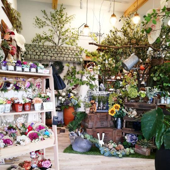 造花や手作り雑貨が可愛らしいお店でした。