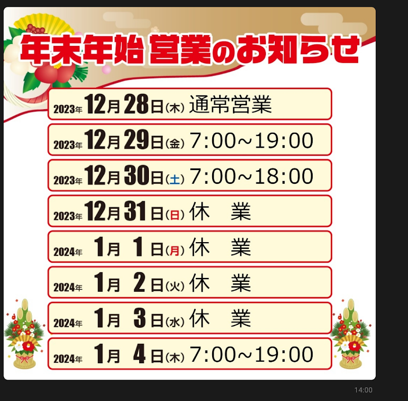 [月火水木金土日] 7:00~20:00 |