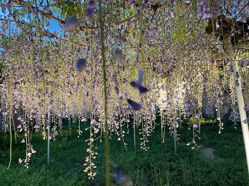 2023年は早かったようで例年の見頃より早く行きました!とても綺麗でした!駐車場へ行くまでの道は狭いですが駐車場は広かったです。駐車場から徒歩ですぐのところに藤棚がありました。夜はライトアップもしているようです!