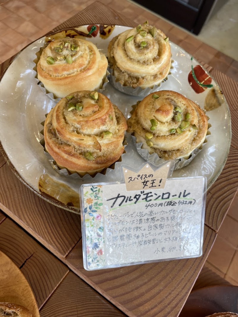 朝7時オープンのお店駐車場もあります7時15分頃到着するもテラス席には既に何組も食事中こじんまりとした店内には沢山の種類のパンがぎっしり迷う どれも美味しそう飲食スペースはテラス席のみ屋根がある場所と芝生のベンチなどかなり広めゆっくり過ごせますリードフックが付いてる場所もありますパンはとてもシンプルで薄い味付けで重めなので選ぶパンにもよりますが1つでも満足感あります。