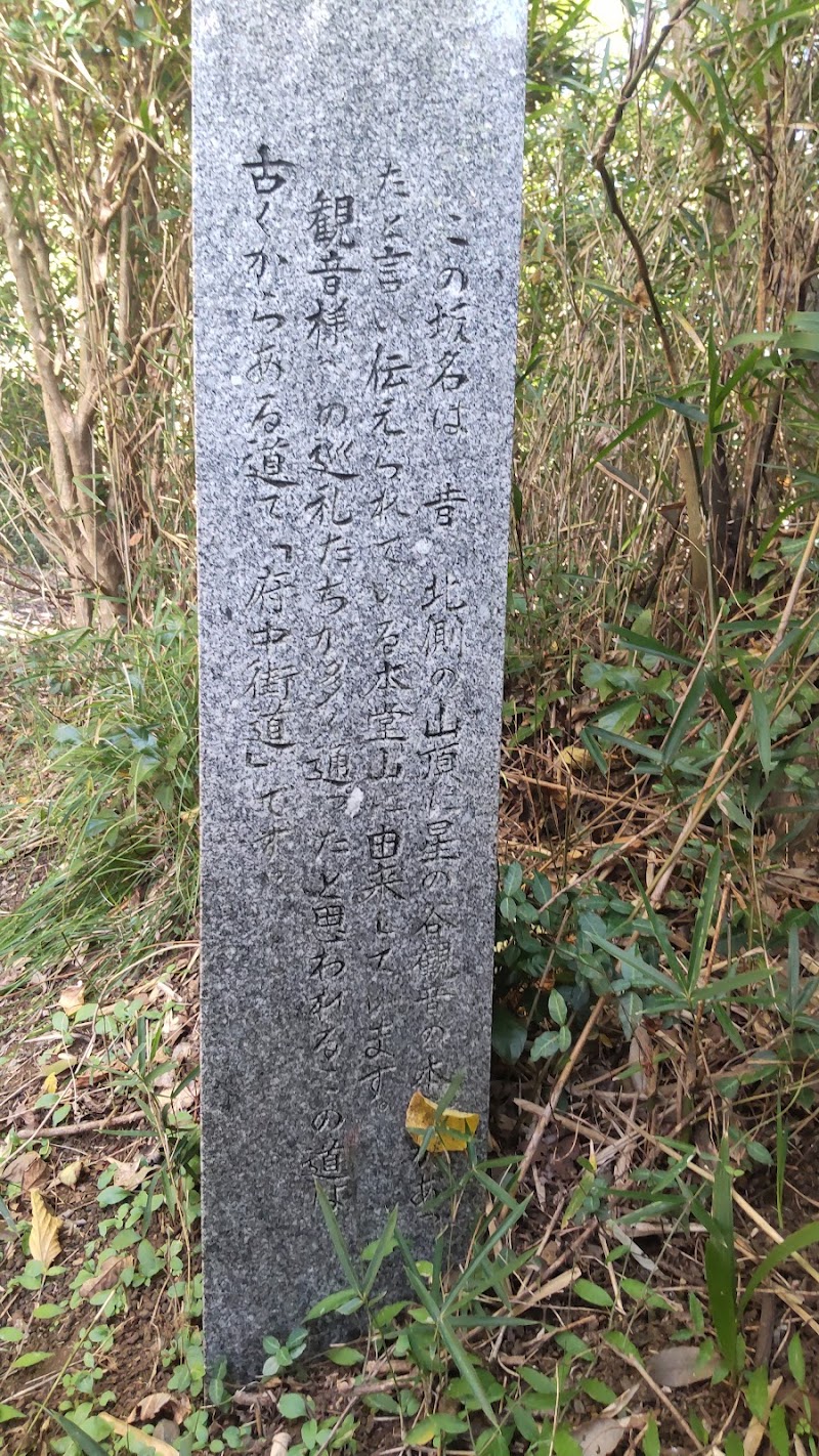 現在の谷戸山の伝説の丘は昔は本堂山といい観音堂がありました。巡礼者達が本堂を目指し通った坂道にちなんで名付けられたと考えられています。星谷寺は江戸時代に現在の麓に移ったと言われています。
