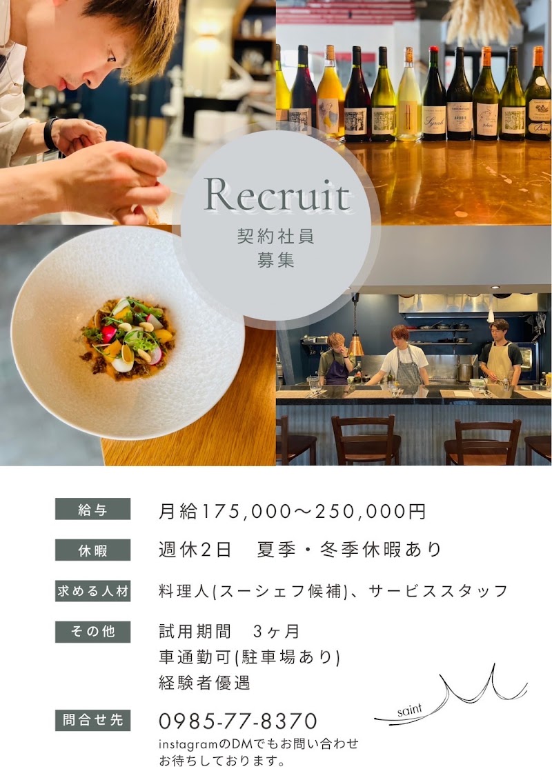 宮崎県産食材をふんだんに美味しく調理した、創作ふフレンチ。フレンチだけど全く濃くなく、しつこさもない、どちらかというと和食的フレンチとも言えるかも。宮観から東京の青山にあるフレンチで修行した若い川崎シェフのセンスと提案に感心しながらいただきました。今回は初来店なので、シェフお任せのコースに。スタートは冷製スープかと思いきや、爽やかなべべすがアクセントのすり流し。デザートを思わせる濃厚でいてへべすが効いた味が、口の中で食材の甘みと軽い酸味で食欲を刺激する。その後の前菜や中菜、メインへとシェフの感性や創造性が豊かな料理が運ばれて来る。しっかりとした美味さだが、茹だる暑さを吹き飛ばすように爽やか。コース全体に「夏」「梅雨」を意識した客への提案が常に感じられる。宮崎市内はイタリアンが多いが、このビストロフレンチは本当に新鮮で本格派。ぜひ食べてみて欲しい。3種類のコースがメインで、アラカルトもあり、ドリンクもかなり厳選した物。ワインはナチュラルワインのみで赤白スパークリングもペアリングしてくれます。