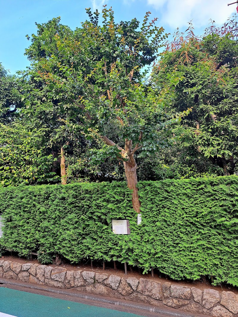 みたか井心亭という和風な文化施設の庭、道に面しているところに、さるすべりが植えられています。道路からでもさるすべりを見ることができます。太宰治ゆかりだということを示す表示もとても小さいので気を付けないと見過ごして通り過ぎてしまいそうです。太宰治が住んでいた場所はこの井心亭からすぐ近くなのですが一般の方が住まわれているので場所は公開されていません。このさるすべりは、そのお宅の庭から移植されたものです。