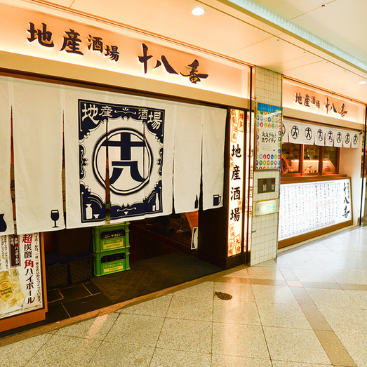 地産酒場 十八番 ホワイティ梅田店地産酒場 十八番 ホワイティ梅田店に来過かつや。梅田地下街ホワイティ梅田 B1ノースモールにある居酒屋。LINE友達になるとハイボールが18円で飲める特典あり。支払いは各種キャッシュレス対応。#大阪府 #大阪市 #北区 #角田町 #梅田地下街 #ホワイティ梅田 #ノースモール #地酒 #居酒屋 #十八番。