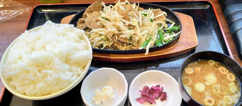 ご飯大盛り無料です。だけど普通の大盛りではありません。関取レベルです。一般人は、大盛りはやめましょう。ちなみに、生姜焼き定食いただきました。肉野菜炒め定食って感じでした。半カレーは、半ではありません。普通に普通盛りです。350円。良心価格です。豚汁、200円。美味しいです。
