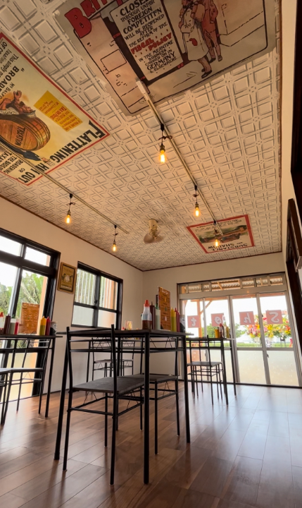 来間島へ行く途中にこちらのお店を見つけました。駐車場を先に発見。そのあとお店にどうやっていけばいいのか少し迷いましたが、サトウキビ畑がみえるとあったので、その方向へ。やっとお店が見えました。そしてあけると・・そんなに広くない空間。不思議なことに、靴を脱いで上がるお店です。注文方法も面白く、注文用紙がテーブルにあり、タコスの・サイズ・タイプ・トッピング・ドリンク・タコスミートをすべて記入して、渡します。ソースも6種類テーブルにあり、お好みでかけられます。タコライスの味は普通かな。店内は、テーマがバラバラなデコレーションが面白かったです。バラバラというのは、実は提供されたプレートもなんかまったく不思議なに合わない感じで・・・(食べ終わりのプレートでお見苦しくすみませ💦)一ついいことは外国人がくると、別の紙がきて、QRコードで読み取ると英語のメニューが見れます。私はSサイズでちょうどいい感じでした。