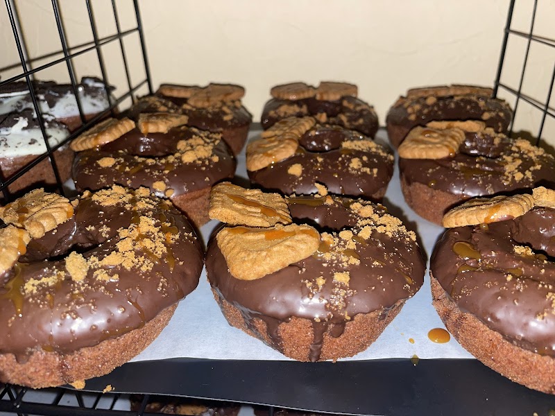夜だけ開いているプレハブ小屋形式の焼きドーナツ屋さん。パインジュースとチョココーヒードーナツ,撮ってませんがブリュレドーナツを注文🍩(※ブリュレはアイスドリンクの上に乗せられないので注意)映え度は高い。ただ焼きドーナツだとしてもあまりにスポンジで香ばしさを感じられず、どのドーナツも甘みが強い。この時間帯ですし、生地の甘さは抑えて素朴に仕上げたほうがトッピングの甘さも際立ち丁度良いかと。一緒に行った二十代の友人二人も同じ意見でした。個人の好みでしょうが味に対してお値段は良いし二度は行かないといった感じです。店員さんは素っ気ない男の人で、ペイペイ等は使えませんでした。2023.12.10 21:00
